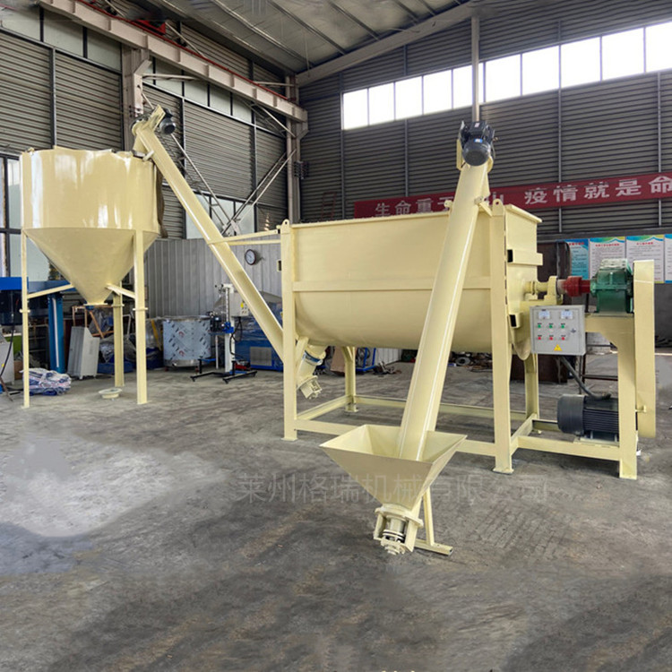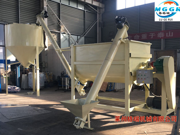 成套干粉設備由臥式螺帶混合機、上料機、攪拌罐組成,攪拌罐下面可配包裝機。