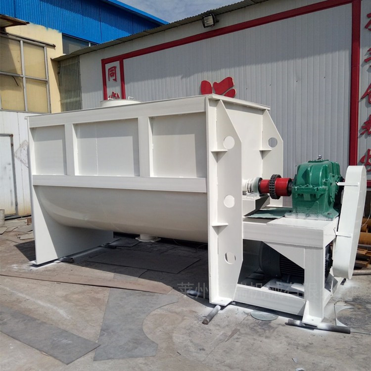 螺帶混合機由U形容器、螺帶攪拌葉片和傳動部件組成;U形的長體筒體結構,保證了被混合物料(粉體、半流體)在筒體內的小阻力運動。正反旋轉螺條安裝于同一水平軸上,形成一個低動力的混合環境,螺帶狀葉片一般做成雙層或三層,外層螺旋將物料從兩側向中央匯集,內層螺旋將物料從中央向兩側輸送,可使物料在流動中形成更多的渦流。加快了混合速度,提高混合均勻度;本機為雙螺帶臥式混合機,其功能是將各種成份的粉料,液體混合均勻,具有適用性廣,混合均勻度好,物料殘留少,維修保養方便等特點,是粉狀物料混合加工的理想設備。