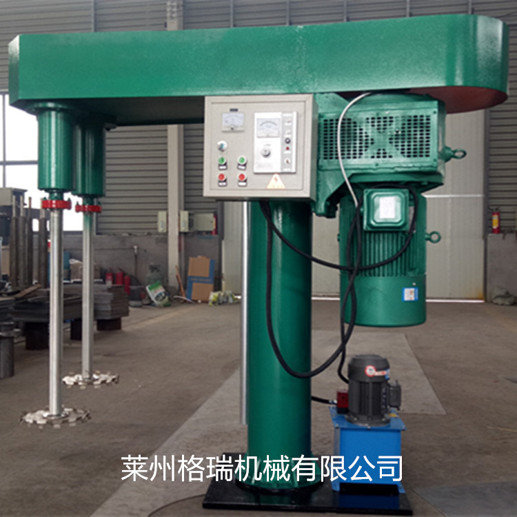分散機(jī)廣泛應(yīng)用于涂料、液體進(jìn)行攪拌分散、溶解的設(shè)備,應(yīng)用涂料、油墨、顏料、膠粘劑等化工產(chǎn)品,該機(jī)由液壓系統(tǒng)、主傳動(dòng)、攪拌系統(tǒng)、導(dǎo)向機(jī)構(gòu)、電控箱五部分組成,各部分結(jié)構(gòu)緊湊、合理。