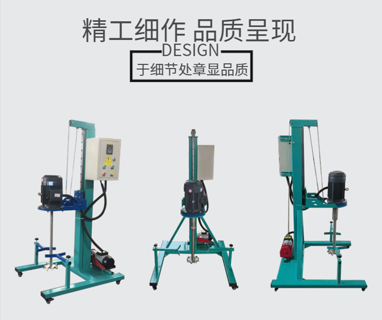 小型簡易分散機變頻調速,電動升降,可以任意移動,可以選擇220V和380v的電源。1.5KW.2.2KW.3KW各種規格、運轉穩定有力,適合各種低粘度液體,升降旋轉自如,適應各種位置;***可靠,操作維護簡單;生產連續性強,對物料可進行快速分散和溶解,分散效果好,生產效率高,運轉平穩,安裝簡便。針對不同物料的粘度及處理量有不同的功率及型號。