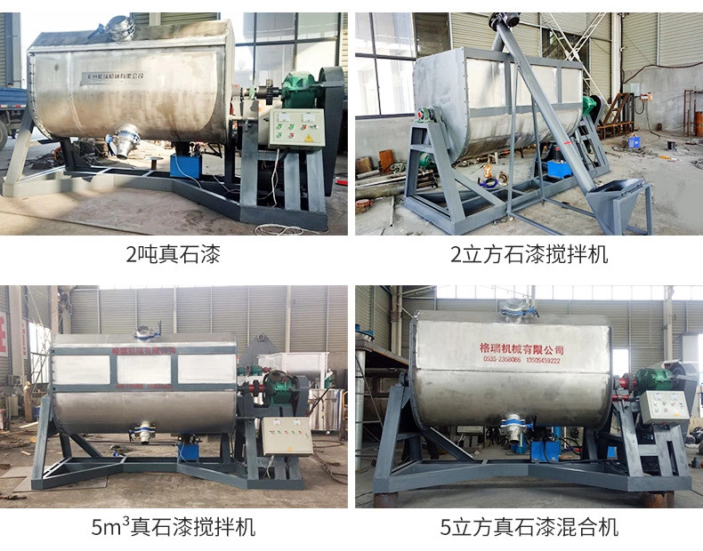 真石漆攪拌機的優點:出入料方便、占地面積小、生產效率高,是生產真石漆的理想設備。,本公司生產的臥式液壓翻缸真石漆攪拌機是根據真石漆的工藝技術特性,由我廠自行設計開發的一種新型混合機,其集刮壁、混合于一體,運行時能使物料進行三維翻滾,使物料快速均勻混合,并有效的死角及物料掛壁。